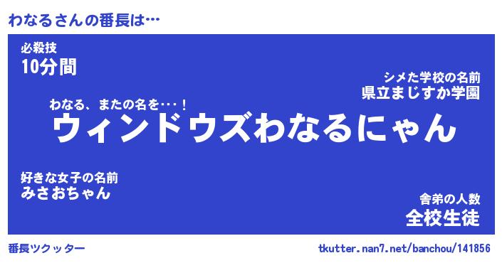 | ヒーロー風カッコイイあだ名 | 『スーパーワナル』『ウルトラわなるマン』 |