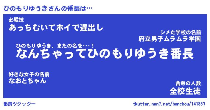 | ヒーロー風カッコイイあだ名 | 『スーパーヒノモリユウキ』 |