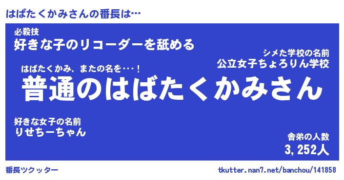 | ヒーロー風カッコイイあだ名 | 『スーパーハバタクカミ』『幻影騎士ハバ』 |