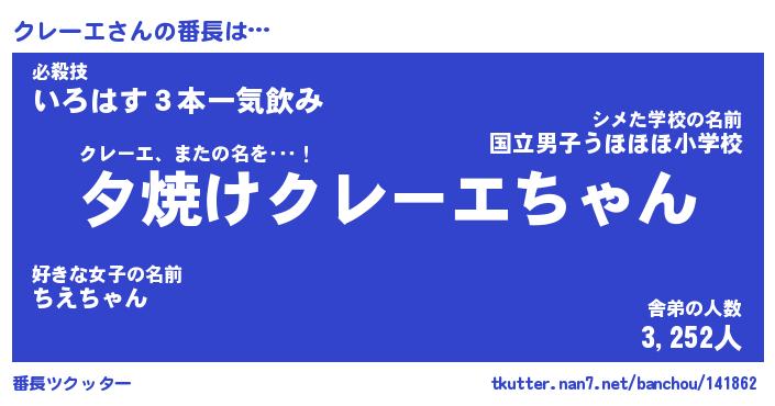 | 2回繰り返すあだ名 | 『クレクレ』『ククレレ』『くぴくぴ』 |