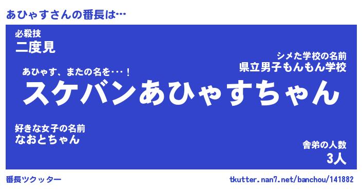 | ファンタジー風あだ名 | 『アヒフェル』『エターナルアヒャスー』 |