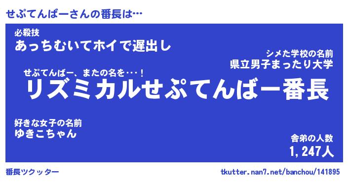 | 伝説のあだ名 | 『伝説のスナイパーせぷてんばー』 |