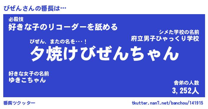 | ヒーロー風カッコイイあだ名 | 『スーパービゼン』『ウルトラびぜんマン』 |