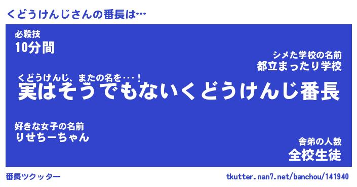 | ヒーロー風カッコイイあだ名 | 『スーパークドウケンジ』『暗黒騎士クド』 |