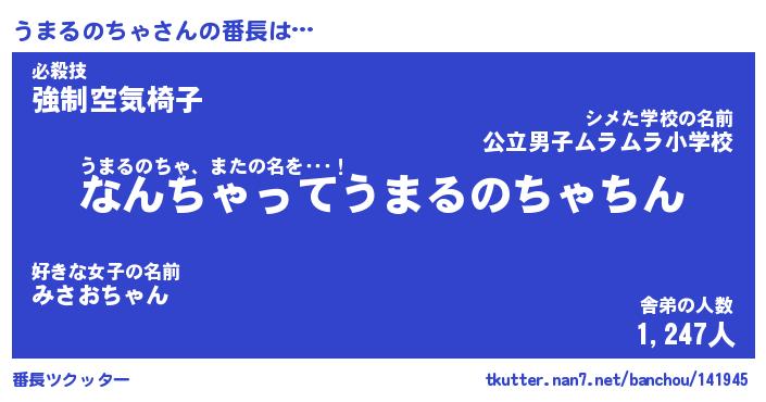 | 肩書あだ名 | 『うまるのちゃ社長』『うまるのちゃ先生』 |