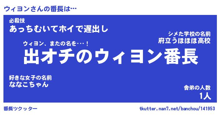 | ヒーロー風カッコイイあだ名 | 『スーパーウィヨン』『黄金騎士ウィ』 |
