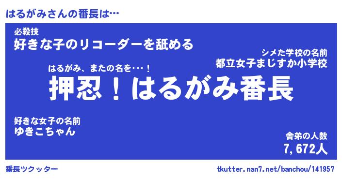 | 2回繰り返すあだ名 | 『はるはる』『ははるる』『ぬれぬれ』 |