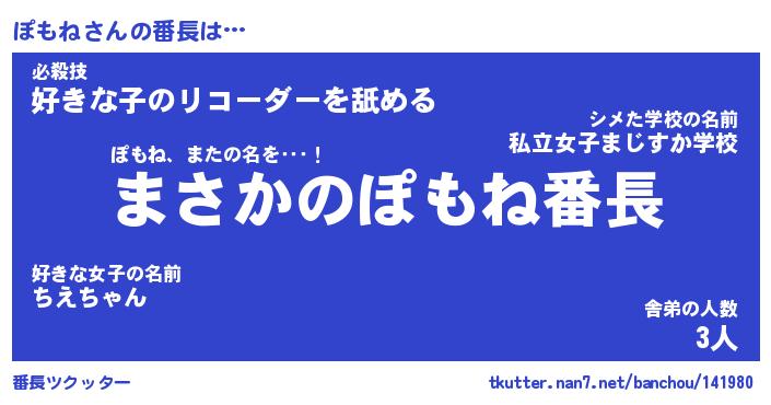 | 意味不明あだ名 | 『ペロリンぽもね』『ぽもねフォーエバー』 |