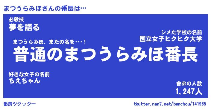 | 肩書あだ名 | 『まつうらみほ店長』『まつうらみほ担任』 |