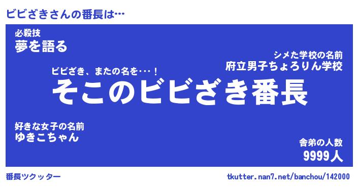 | ヒーロー風カッコイイあだ名 | 『スーパービビザキ』『天弓騎士ビビ』 |