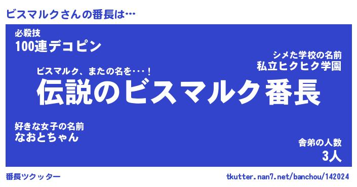 | ヒーロー風カッコイイあだ名 | 『スーパービスマルク』『魔戒騎士ビス』 |