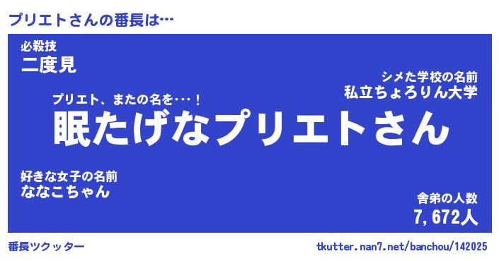 | ファンタジー風あだ名 | 『プリフェル』『エターナルプリエトー』 |