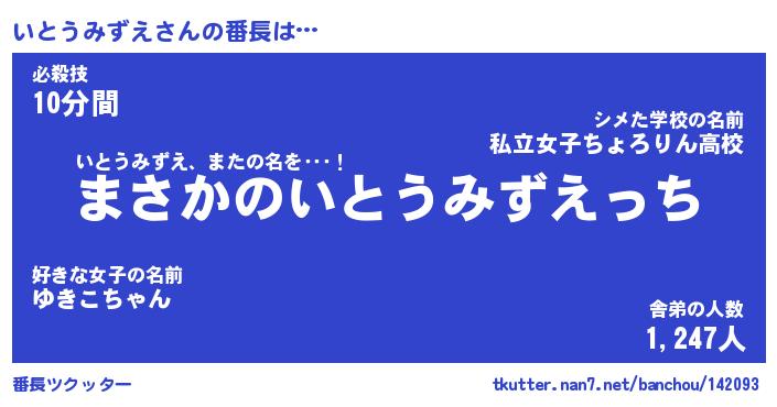 | 男性向けラノベタイトル風あだ名 | 『いとうみずえの憂鬱』 |