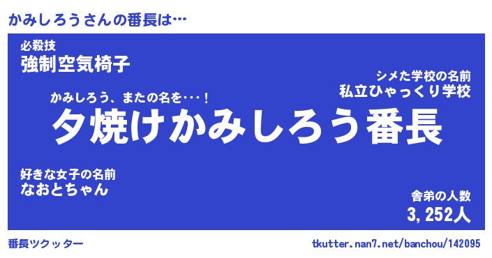 | 伝説のあだ名 | 『封印されしスナイパーかみしろう』 |