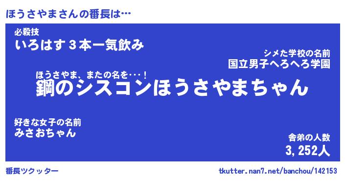 | 肩書あだ名 | 『ほうさやま店長』『ほうさやま国家主席』 |