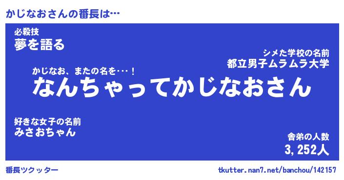 | 意味不明あだ名 | 『ペロリンかじなお』『永久保存かじなお』 |