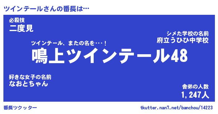 | ヘコむあだ名 | 『ツイもー』『レバニラ』『ツイ太郎』 |