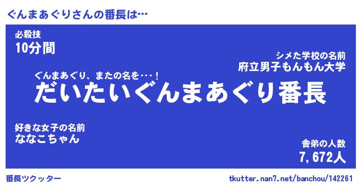 | 意味不明あだ名 | 『ペロリンぐんまあぐり』 |