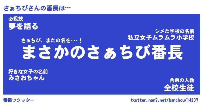 | 伝説のあだ名 | 『伝説のスナイパーさぁちび』 |