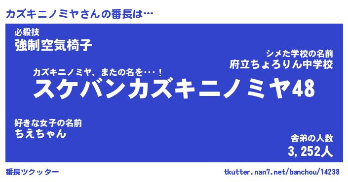 | 肩書あだ名 | 『カズキニノミヤ御曹司』 |