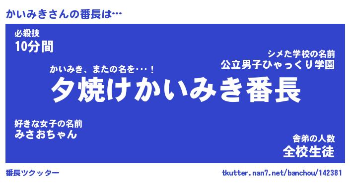 | ファンタジー風あだ名 | 『カイフェル』『エターナルカイミキー』 |