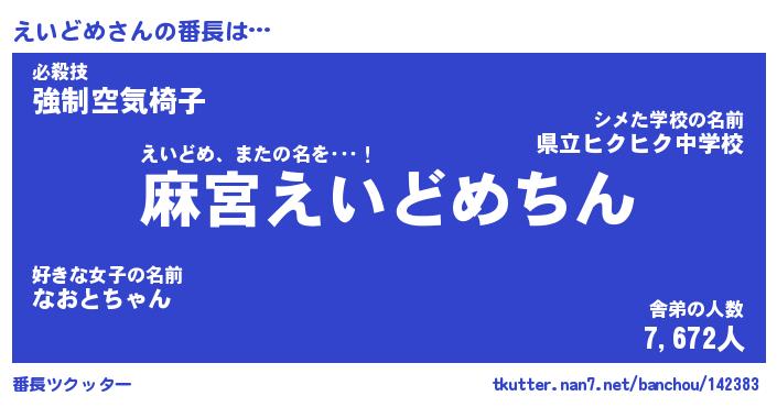 | ヘコむあだ名 | 『えいにゅー』『豆乳』『えいっちょ』 |