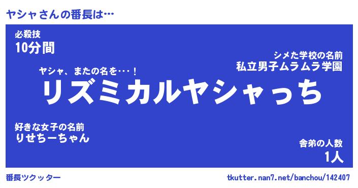 | ヒーロー風カッコイイあだ名 | 『スーパーヤシャ』『ウルトラヤシャマン』 |