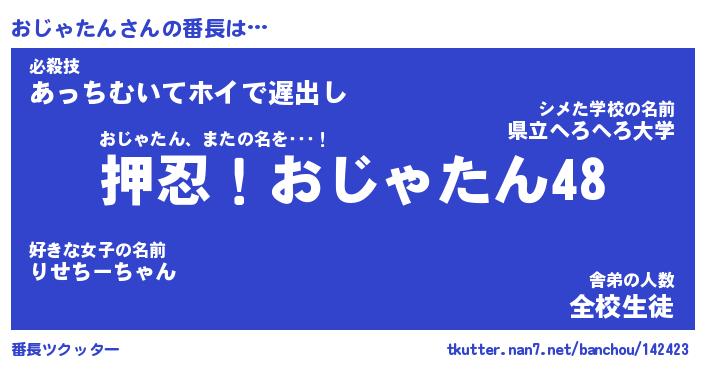 | 肩書あだ名 | 『おじゃたん店長』『おじゃたん総理大臣』 |