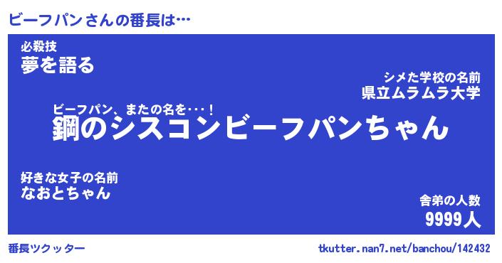 | 肩書あだ名 | 『ビーフパン社長』『ビーフパン国家主席』 |
