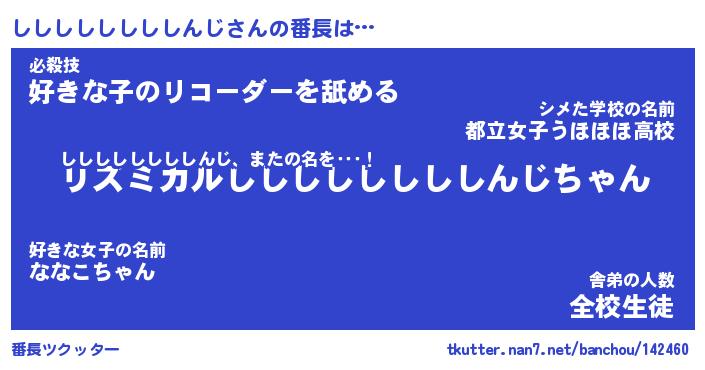 | 伝説のあだ名 | 『伝説の竜騎士ししししししししんじ』 |