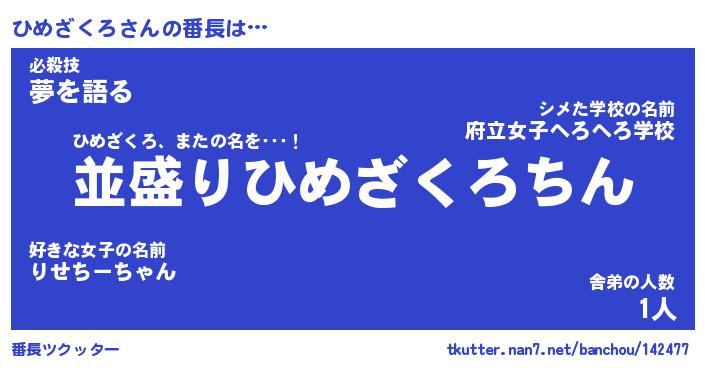 | ヒーロー風カッコイイあだ名 | 『スーパーヒメザクロ』『黄金騎士ヒメ』 |