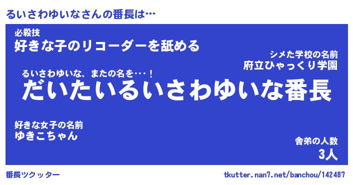 | ヘコむあだ名 | 『るいっふぃ~』『つくし』『るいを』 |