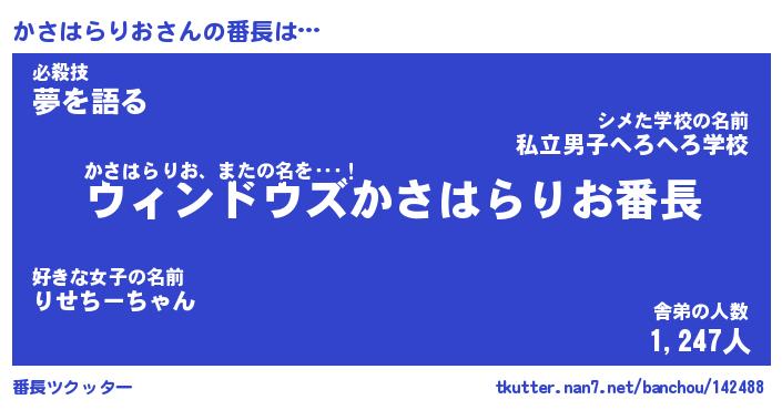 | 意味不明あだ名 | 『ペロリンかさはらりお』 |