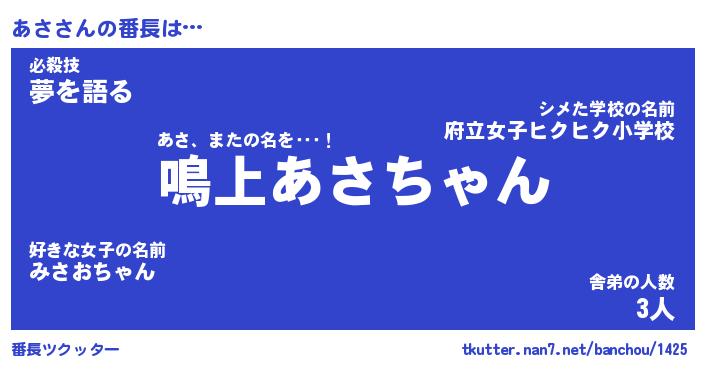 | 肩書あだ名 | 『あさ社長令嬢』『あさ総理大臣』 |