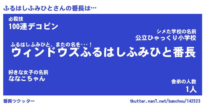| ヘコむあだ名 | 『ふるもー』『つくし』『ふるぷりん』 |