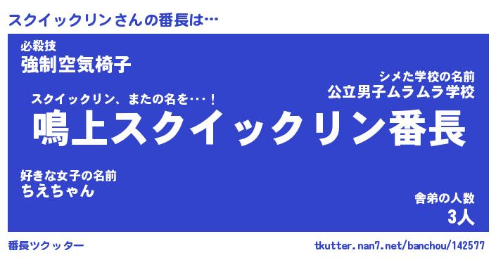 | ツイッター | スクイックリンさんのツイッターID『dendenmushi_idle』 |