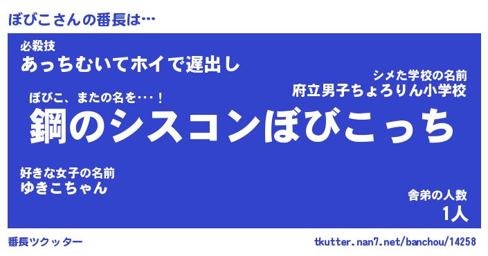 | ヘコむあだ名 | 『ぼびにー』『なまこ酢』『ぼびっ子』 |