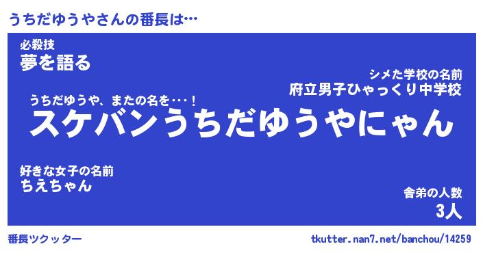 | ヒーロー風カッコイイあだ名 | 『スーパーウチダユウヤ』『魔戒騎士ウチ』 |