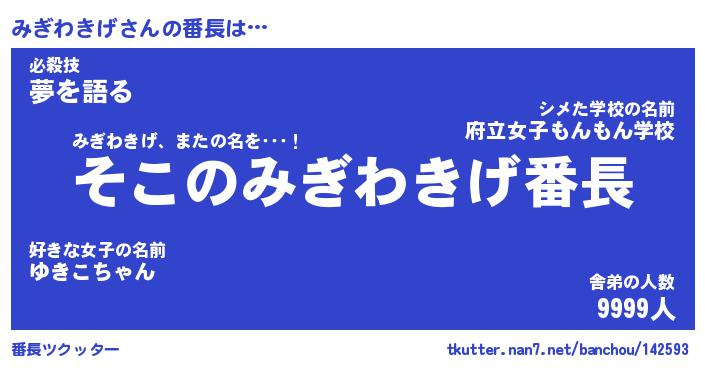 | 肩書あだ名 | 『みぎわきげ社長』『みぎわきげ大統領』 |