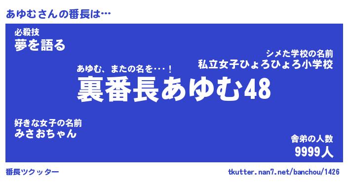 | ヘコむあだ名 | 『あゆにゅー』『豆乳』『あゆ太郎』 |