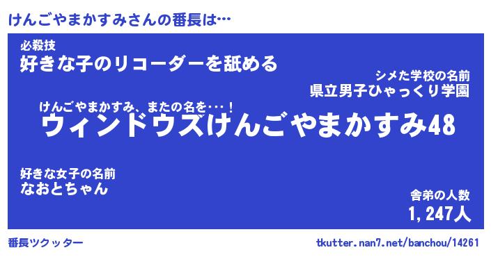 | 伝説のあだ名 | 『伝説のスナイパーけんごやまかすみ』 |