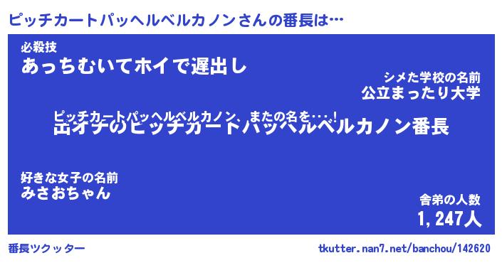 | ヒーロー風カッコイイあだ名 | 『スーパーピッチカートパッヘルベルカノン』 |