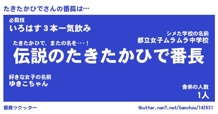 | 伝説のあだ名 | 『伝説のスナイパーたきたかひで』 |