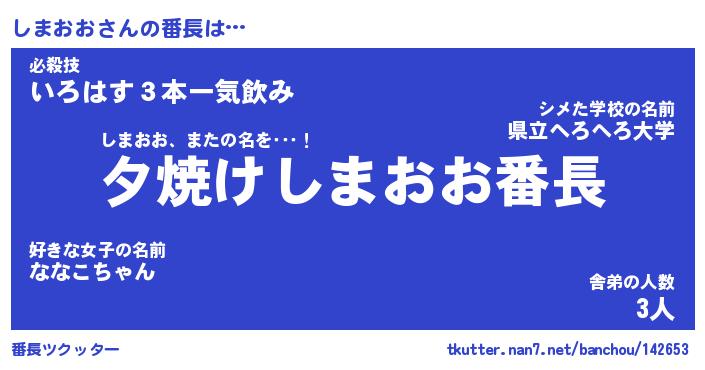 | 肩書あだ名 | 『しまおお店長』『しまおお大統領』 |