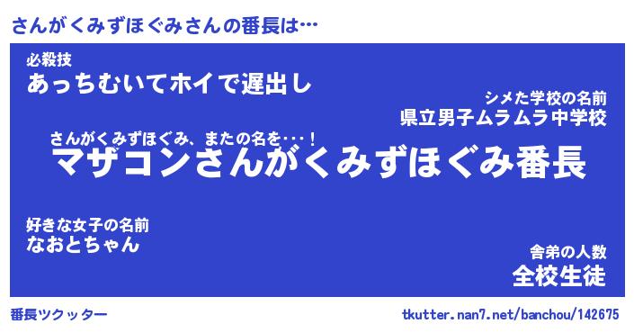| 肩書あだ名 | 『さんがくみずほぐみ店長』 |