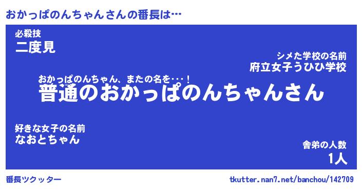 | 意味不明あだ名 | 『ペロリンおかっぱのんちゃん』 |