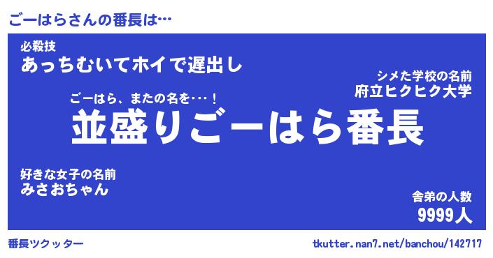 | 肩書あだ名 | 『ごーはら店長』『ごーはら国家主席』 |