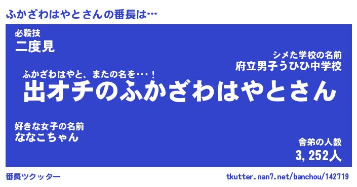 | 伝説のあだ名 | 『伝説のスナイパーふかざわはやと』 |
