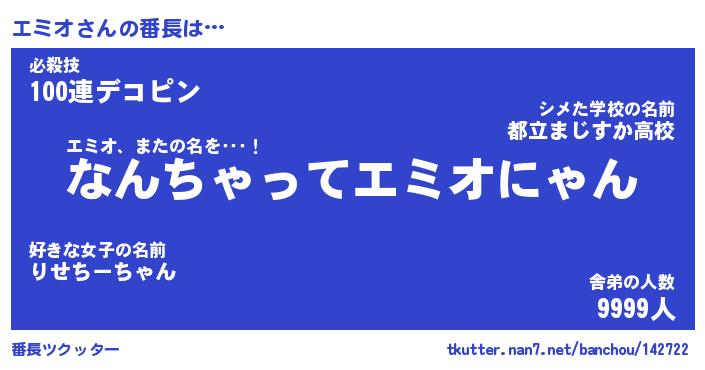 | 意味不明あだ名 | 『ペロリンエミオ』『エミオフォーエバー』 |