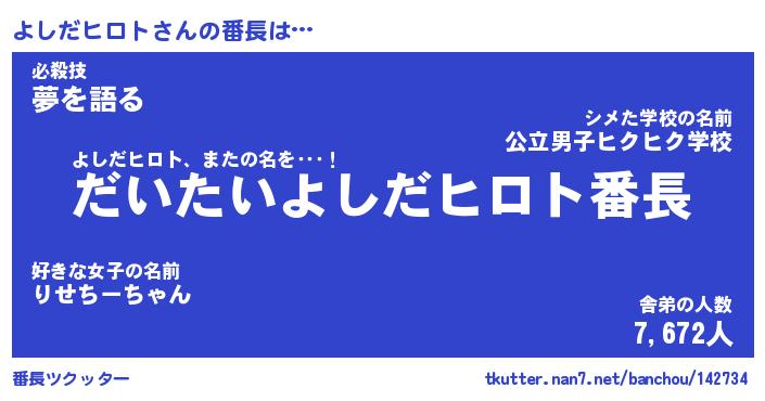 | 肩書あだ名 | 『よしだヒロト店長』『よしだヒロト団長』 |